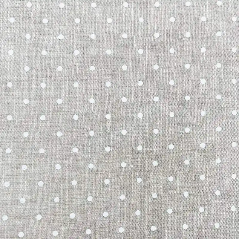Tessuto 100% Lino, Beige con Piccoli Pois Bianchi Popolare