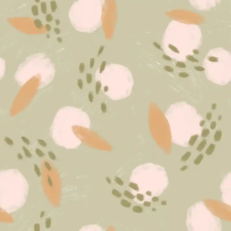 È resistente e morbido, e presenta un disegno fantastico per decorare la casa in primavera o estate. La stampa raffigura figure astratte e pennellate in toni rosa, verde oliva e pesca su fondo in verde pastello. Eccellente per confezionare borse da mare!
