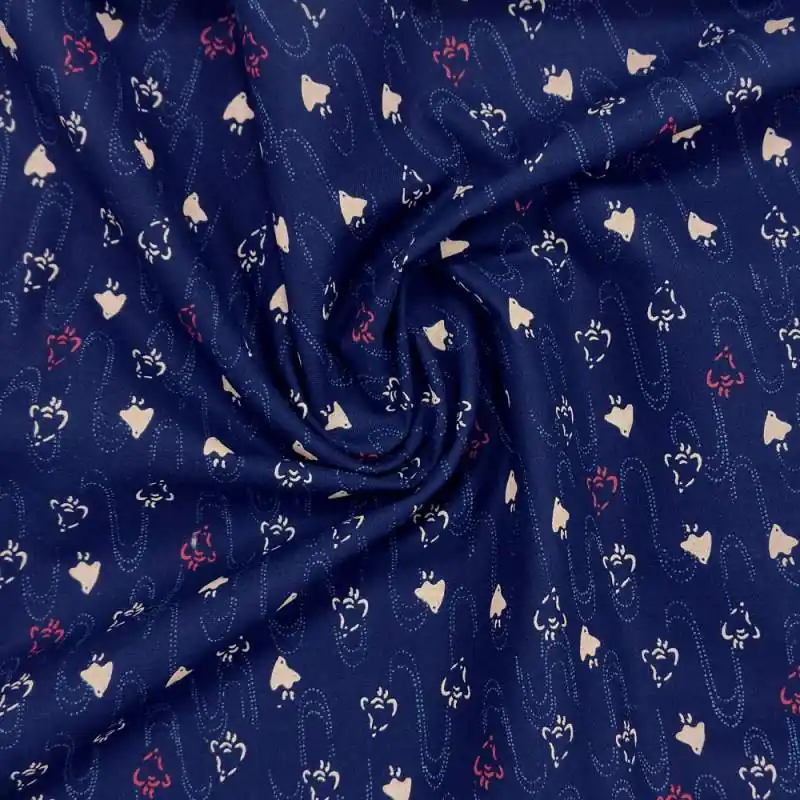 - Tessuto blu double face: da un lato gli uccellini sono beige e rossi, sul lato opposto sono bianchi