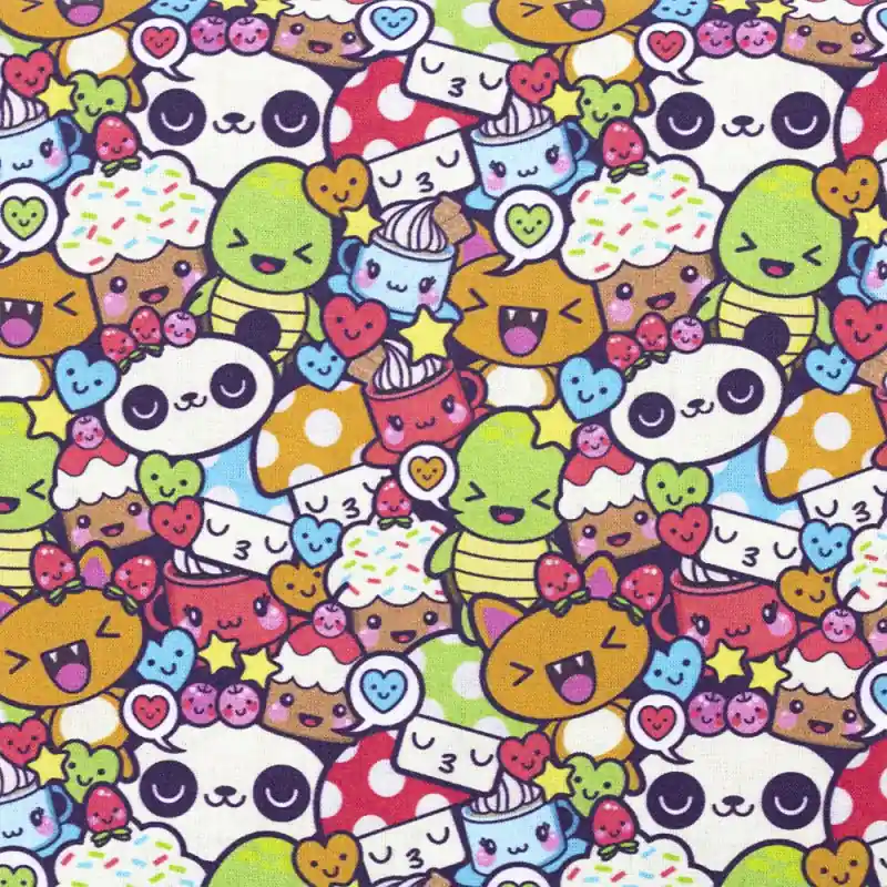 Il Tessuto in cotone – Cartoon Anime offre una divertente fantasia stile giapponese con personaggi kawaii di anime. Questi cartoni animati giapponesi presentano facce adorabili e tenere.