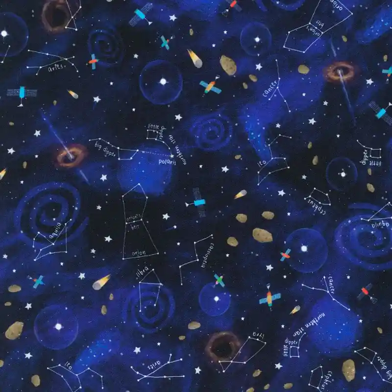 Caratteristiche del Tessuto in Cotone Constellations – Space Adventure di Robert Kaufman: