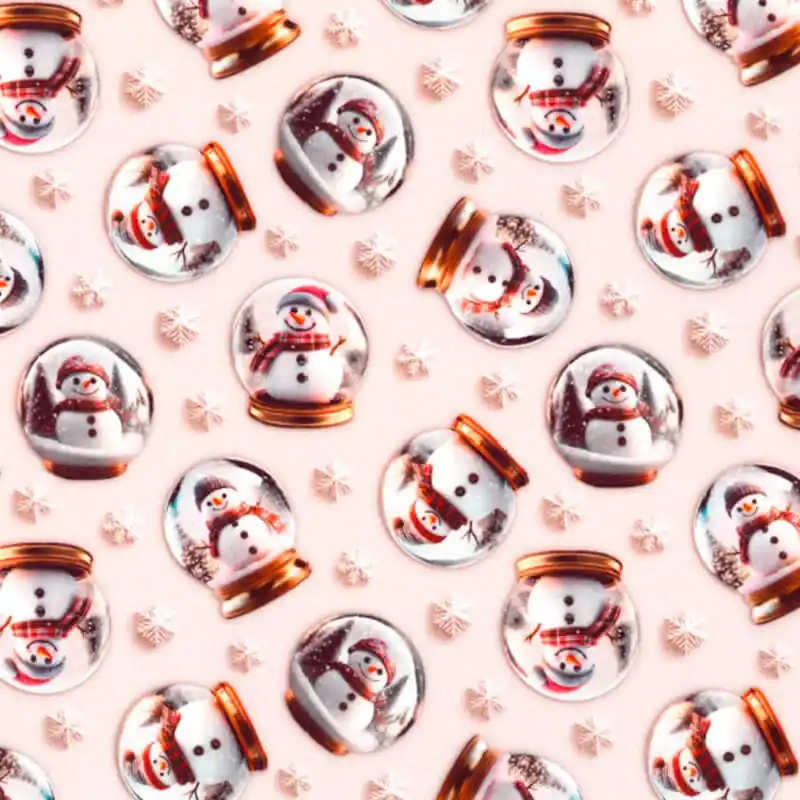 Il Tessuto in Cotone – Palline di Neve con Pupazzi cattura tutta la magia dell’inverno con un affascinante motivo di pupazzi di neve all’interno di classiche sfere natalizie di vetro. Ogni sfera presenta scene tenere e invernali che trasmettono calore e nostalgia.