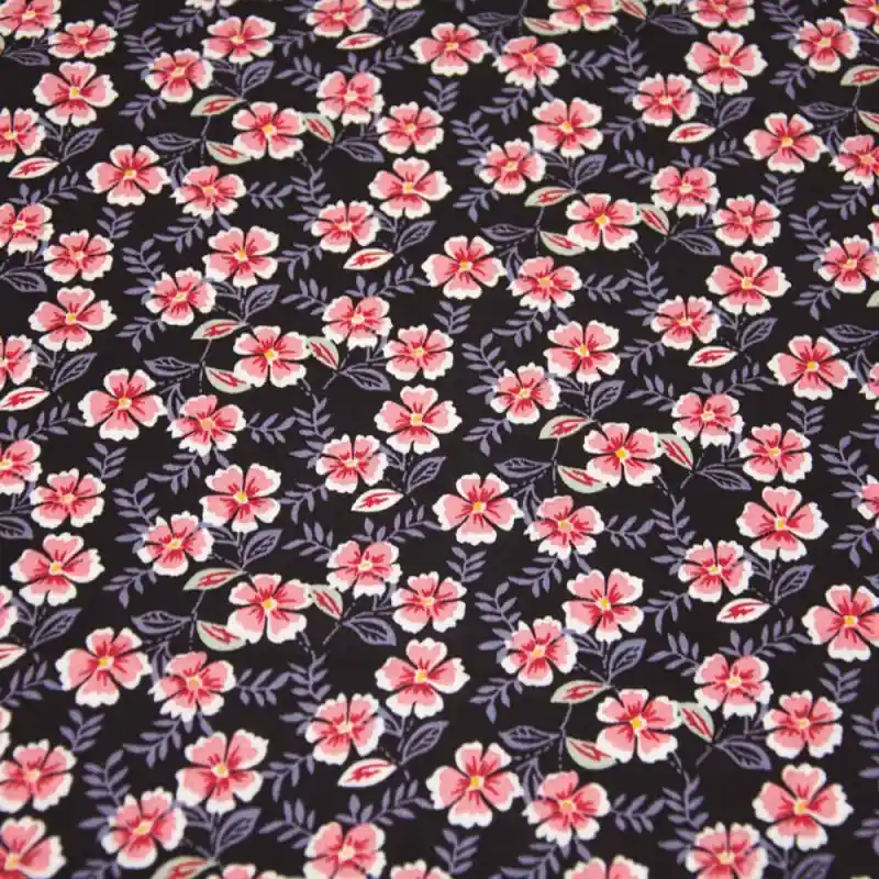 Il Tessuto in Viscosa Print – Summer Night Flowers estivi è una scelta meravigliosa per i tuoi progetti di cucito primaverili o estivi. Questo tessuto in viscosa presenta un’incantevole stampa di fiori rosa su sfondo scuro, aggiungendo un tocco romantico ed elegante ai tuoi capi.