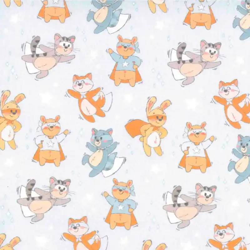 Tessuto popeline in cotone – Animali Supereroi Prezzo Scontato