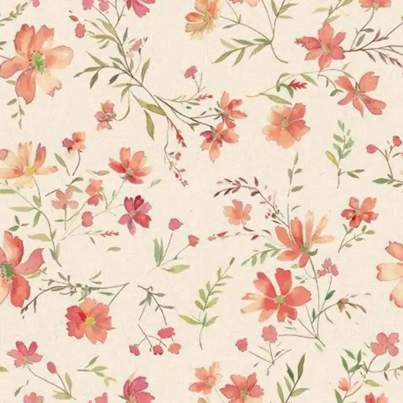Leggerezza floreale con un’essenza naturale. Il Tessuto Recycled Canvas Print Katia Unplugged Flowers presenta una delicata stampa di fiori selvatici nei toni del corallo, salmone e verde su uno sfondo grezzo. Il suo design in stile acquerello trasmette freschezza, semplicità e serenità, ideale per chi cerca progetti tessili dall’estetica primaverile e spirito sostenibile.