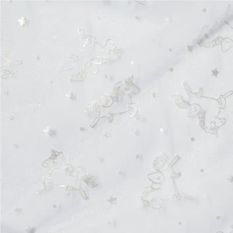 Il Tessuto Tulle Silver – Grey Unicorns di Katia è un tulle di colore grigio chiaro che offre una fantasia di unicorni in glitter in colore argento, andando a creare un aspetto luminoso e originale.
