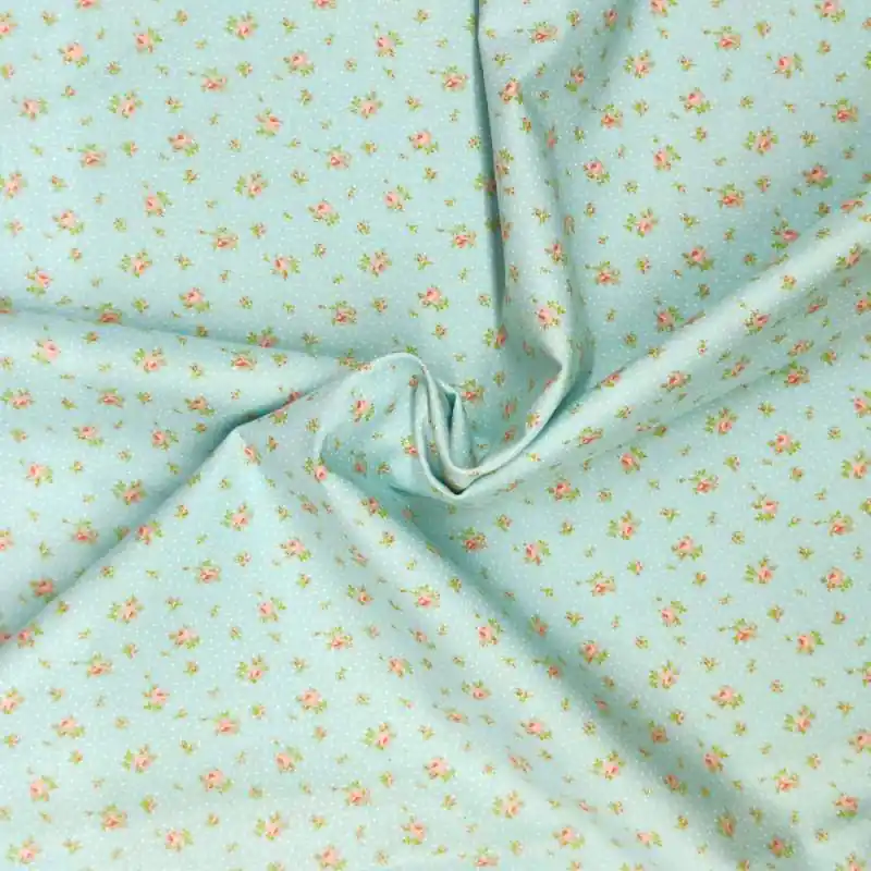 Tessuto verde acqua a pois con fiorellini – Moda Fabrics, Bespoke Bloom Popolare