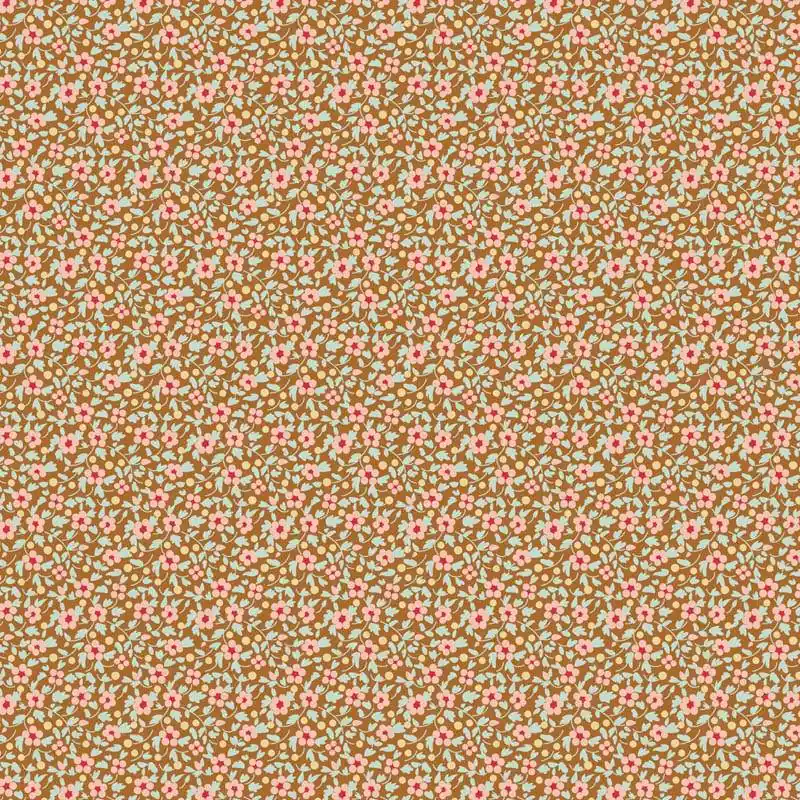 Tilda Brie Basics Sand, Tessuto marrone con fiorellini rosa Promo Stagionale