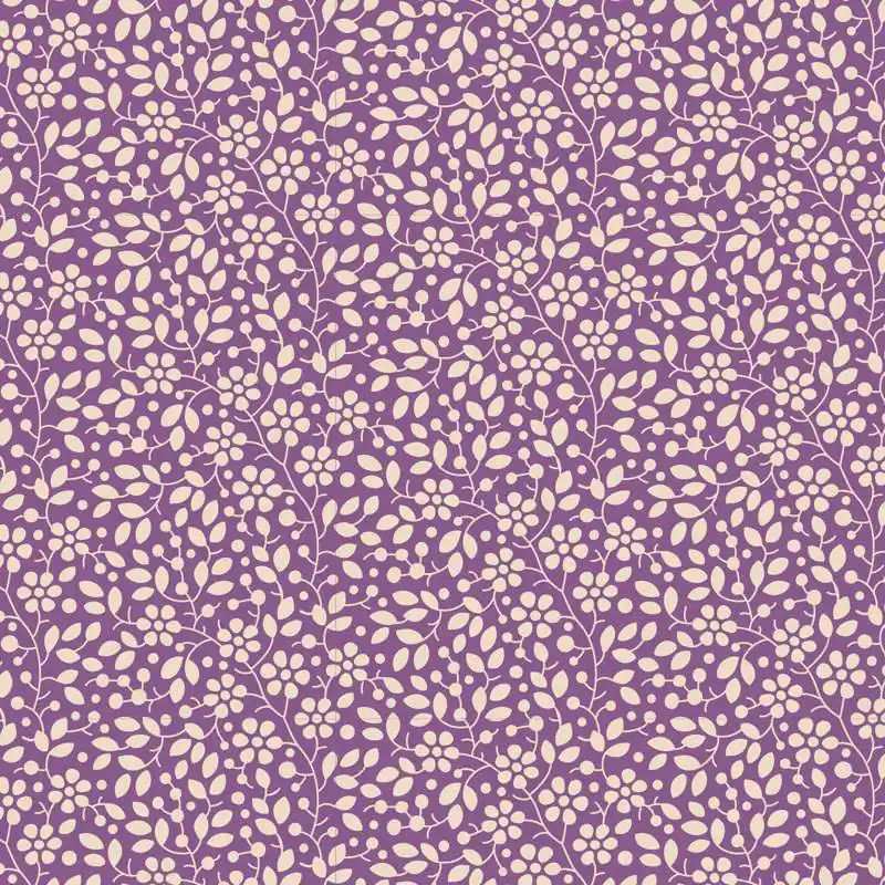 - Tessuto Viola con Disegno di Piccoli Fiorellini Panna.