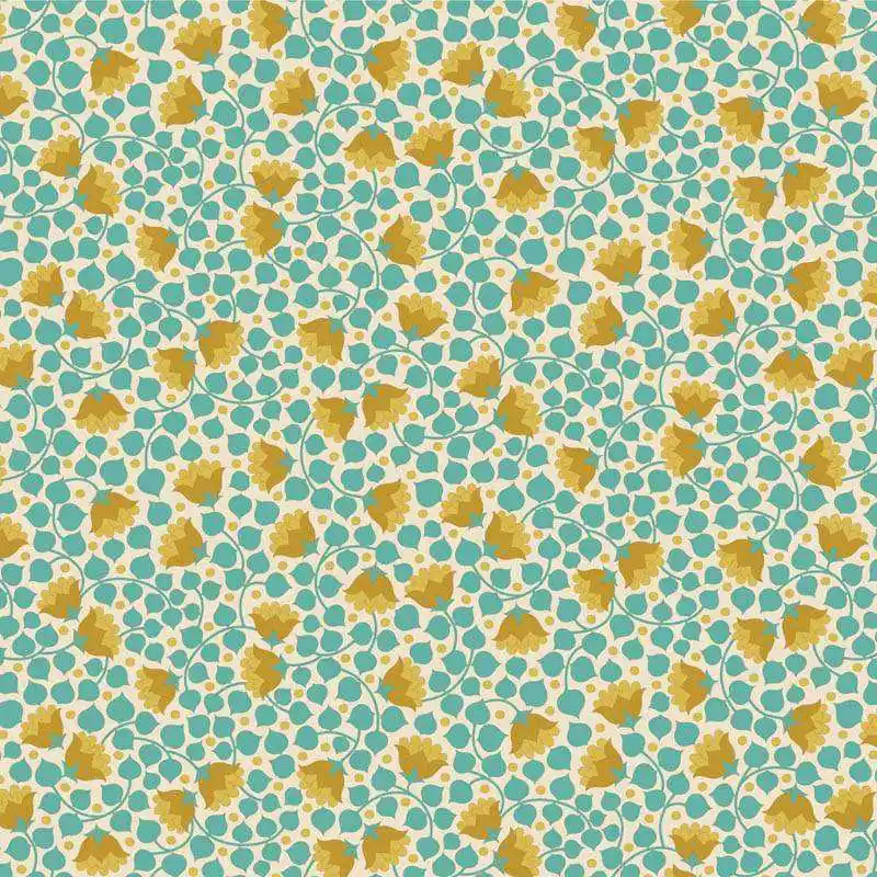 Tilda Wallflower Bellflower Teal, Tessuto Turchese Campanule Solo Oggi
