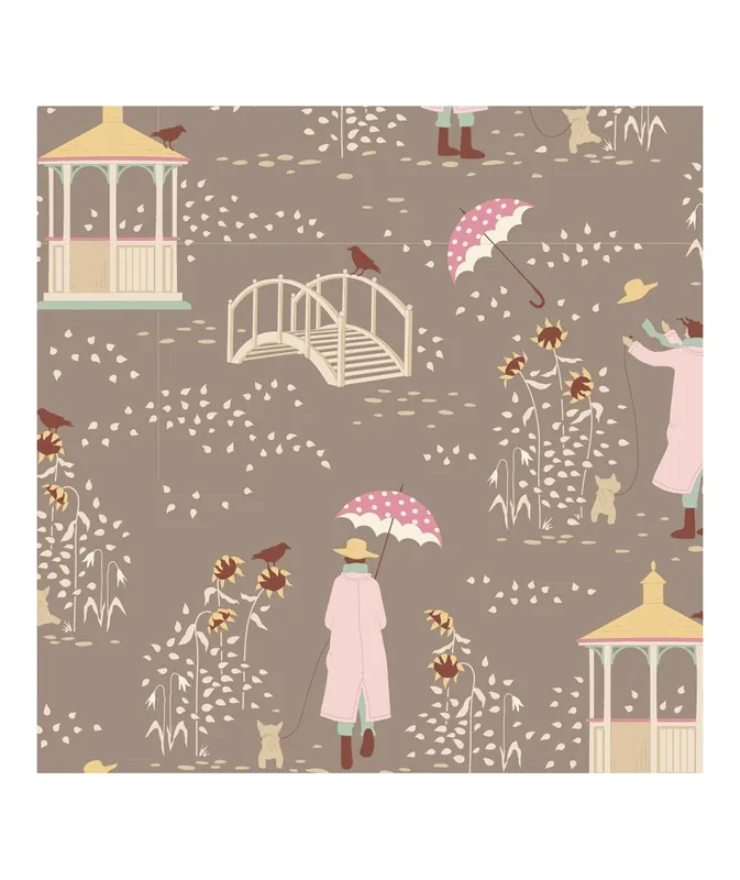 Tilda Windy Days Windy Walk Grey, Tessuto Grigio con Disegno di una Giornata Ventosa Super Prezzo