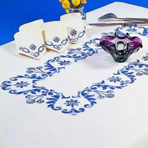 Scegliete la vostra tovaglia nelle dimensioni di vostra scelta e ricamate seguendo i motivi stampati.