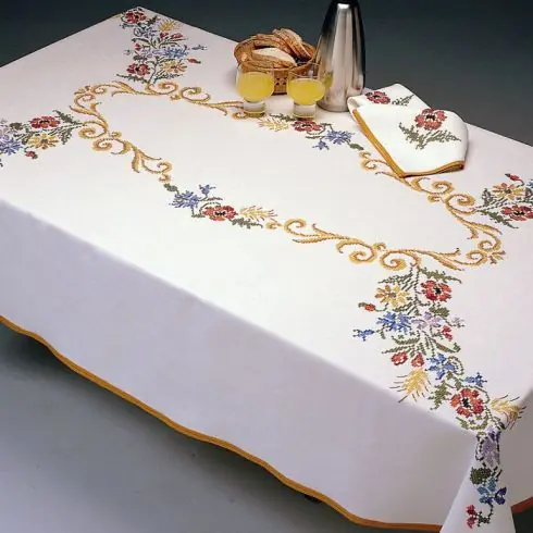 Scegliete la vostra tovaglia nelle dimensioni di vostra scelta e ricamate seguendo i motivi stampati.