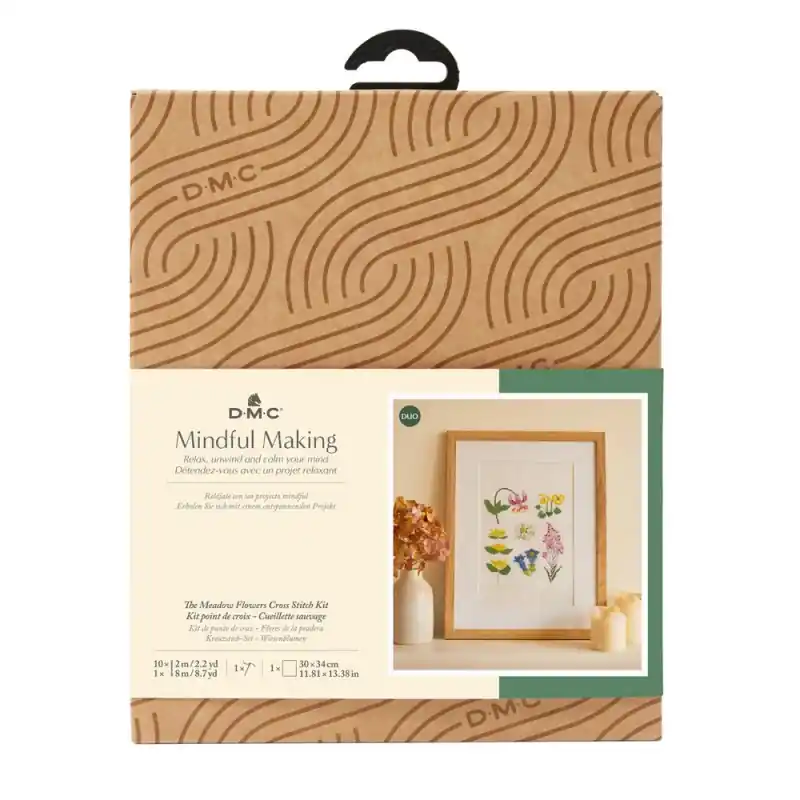 Il Kit di Punto Croce – Fiori di Prato della collezione Mindful Making di DMC contiene tutti i materiali necessari per creare questi fiori di prato. Con l’aiuto delle istruzioni imparerai a ricamare facilmente questi fiori a punto croce.