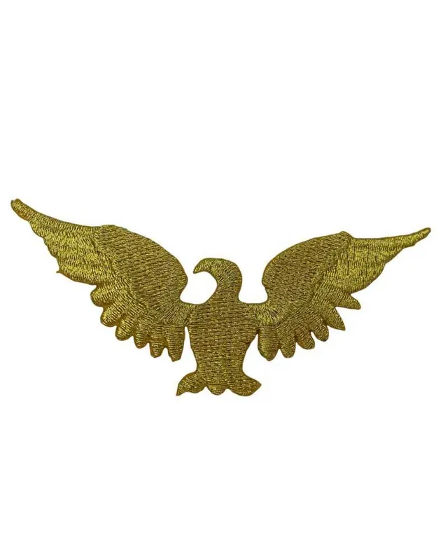 Ultimissimo Modello Applicazione Patch Termoadesiva Ricamo Aquila Oro Lurex 90×35 Mm