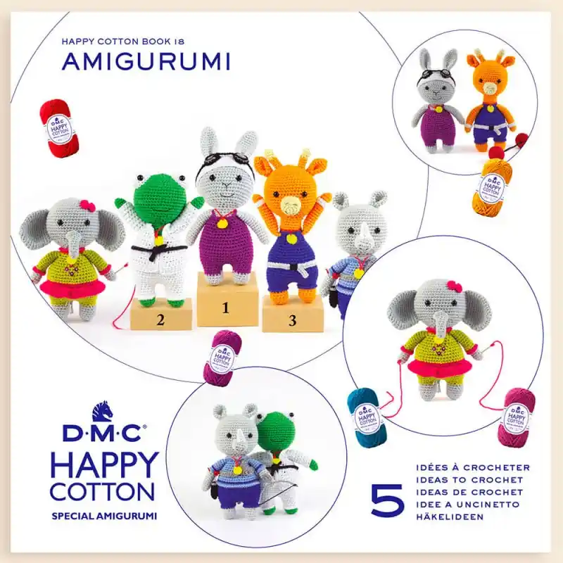 DMC Happy Cotton N.º 18 – Animali Olimpici vi porta in un mondo emozionante dove gli animali diventano campioni olimpici. Questo affascinante libro di schemi all’uncinetto vi invita a creare una collezione di adorabili amigurumi sportivi, che rappresentano una varietà di sport olimpici, dalla ginnastica o dal tiro con l’arco al judo.