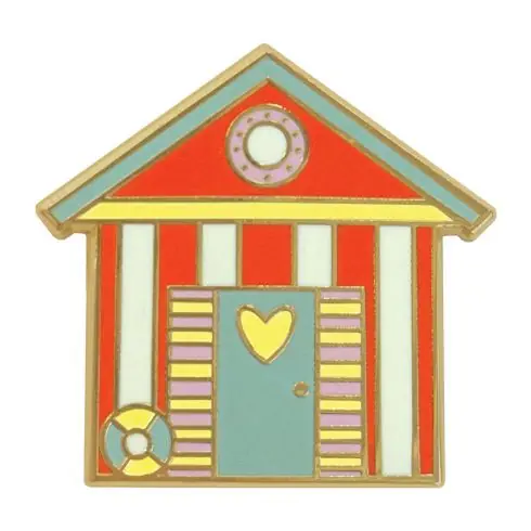 Porta-aghi magnetico in metallo del marchio Bothy Threads a forma di capanna da spiaggia.