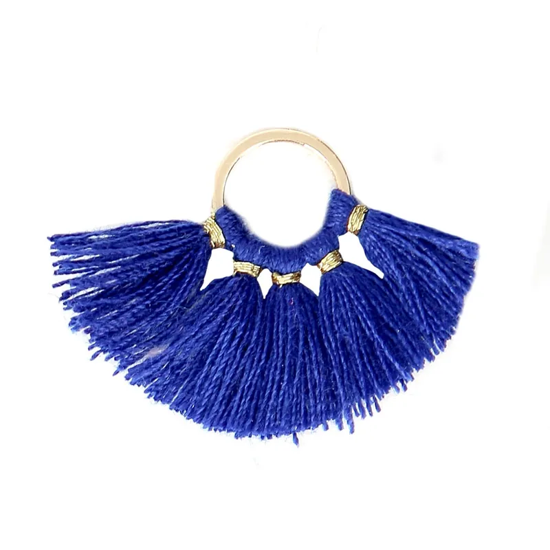 Ultimissimo Modello Petit pendentif éventail avec pompons imitation coton 20×29 mm Bleu Roi/doré x1