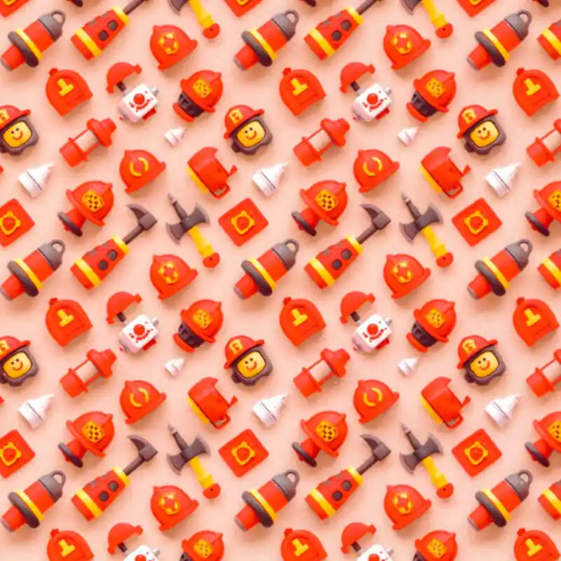 Il tessuto perfetto per piccoli eroi! Il Tessuto in Cotone Accessori da Pompieri presenta una stampa divertente piena di caschi, manichette, asce, allarmi, idranti e simpatici pompieri illustrati in toni rossi e gialli vivaci. Un design dinamico e pieno di energia che celebra il mondo dei pompieri in modo allegro e colorato.