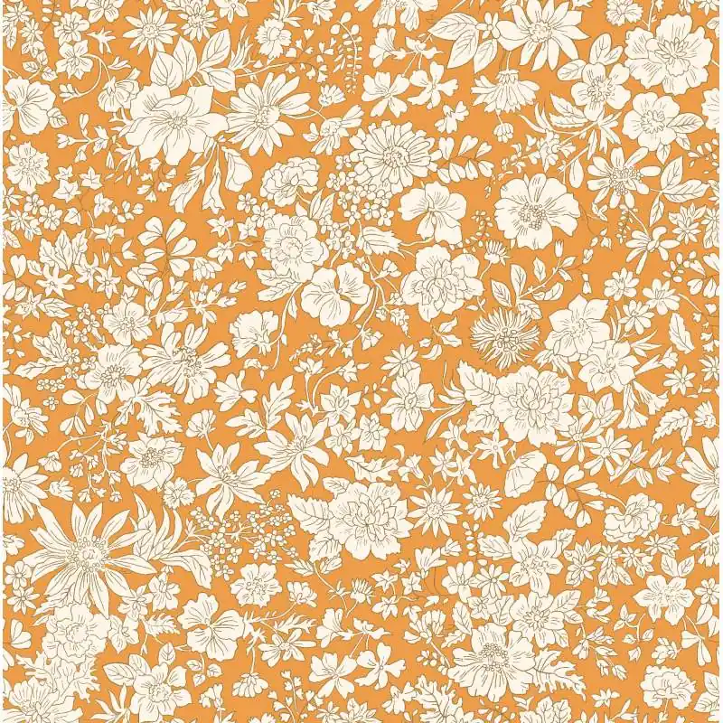 Vendita Finale Emily Belle Brights Saffron, Tessuto Arancione a fiori bianchi – Liberty Fabrics