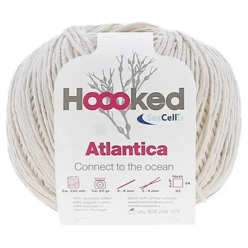 Hoooked Atlantica è un filo perfetto per i più piccoli della casa. È fatto a partire da una fibra di alghe (SeaCell™ LT), cotone riciclato e cotone organico.