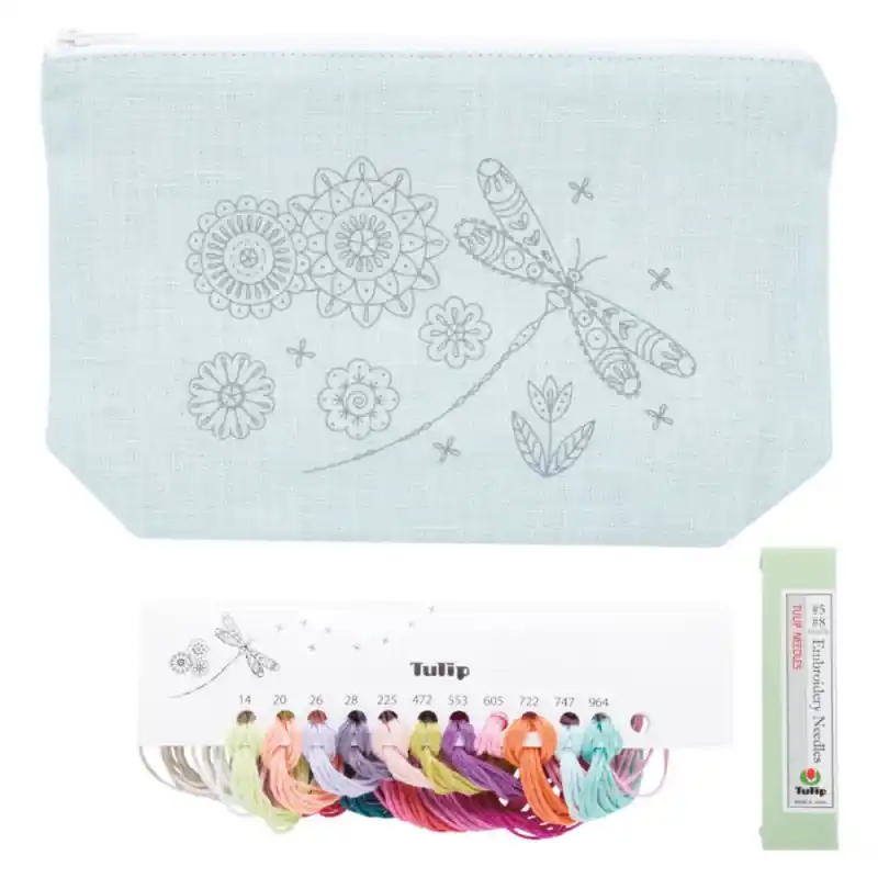 Disegnato da Christel Gouze Elbaz, questo astuccio ricamato sarà sia un’espressione della tua creatività che un pezzo funzionale ed elegante. Scopri la bellezza di quest’arte tessile con il Kit da Ricamo Custodia Dragonfly di Tulip.