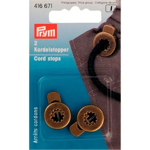 2 tappi a fune con 1 foro, in metallo inossidabile color ottone anticato. Permette di fermare un cavo, un collegamento. Decorativo per l’abbigliamento.