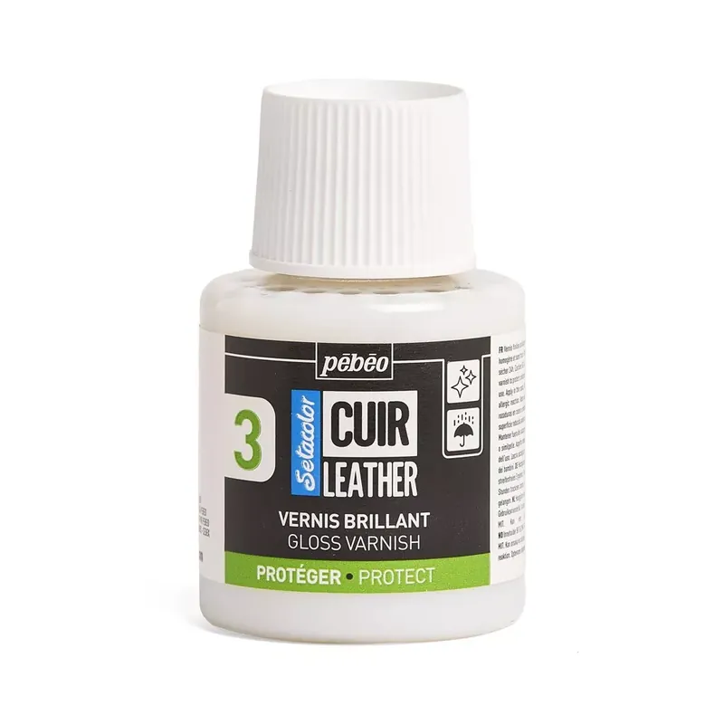 Ce vernis brillant pour peinture Setacolor Cuir de la marque Pébéo est un vernis de finition, qui permet de protéger les créations en cuir et simili cuir des rayures ou des frottements.